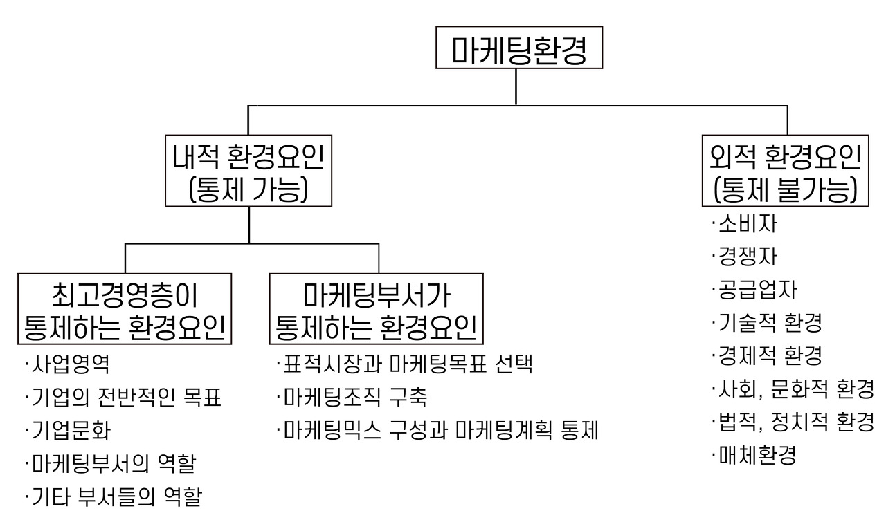 - 인구통계적, 경제적, 자연적, 기술적, 정치적, 문화적 환경
